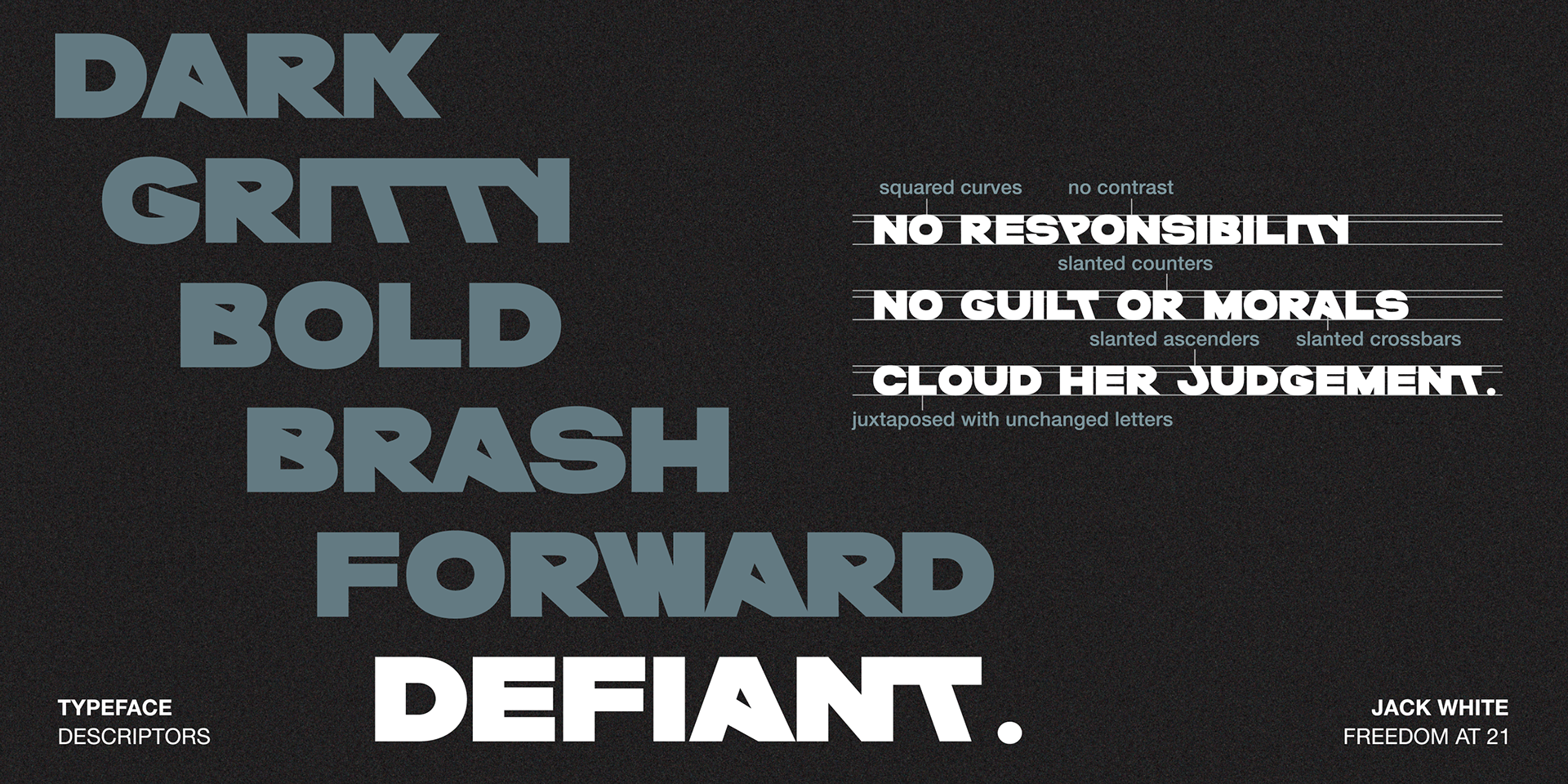 Slantback is a sans-serif, grotesque display font inspired by backslant typefaces. By slanting specific elements of certain letters and leaving some unslanted, I aimed to create a slightly aggressive and defiant energy while maximizing legibility.
